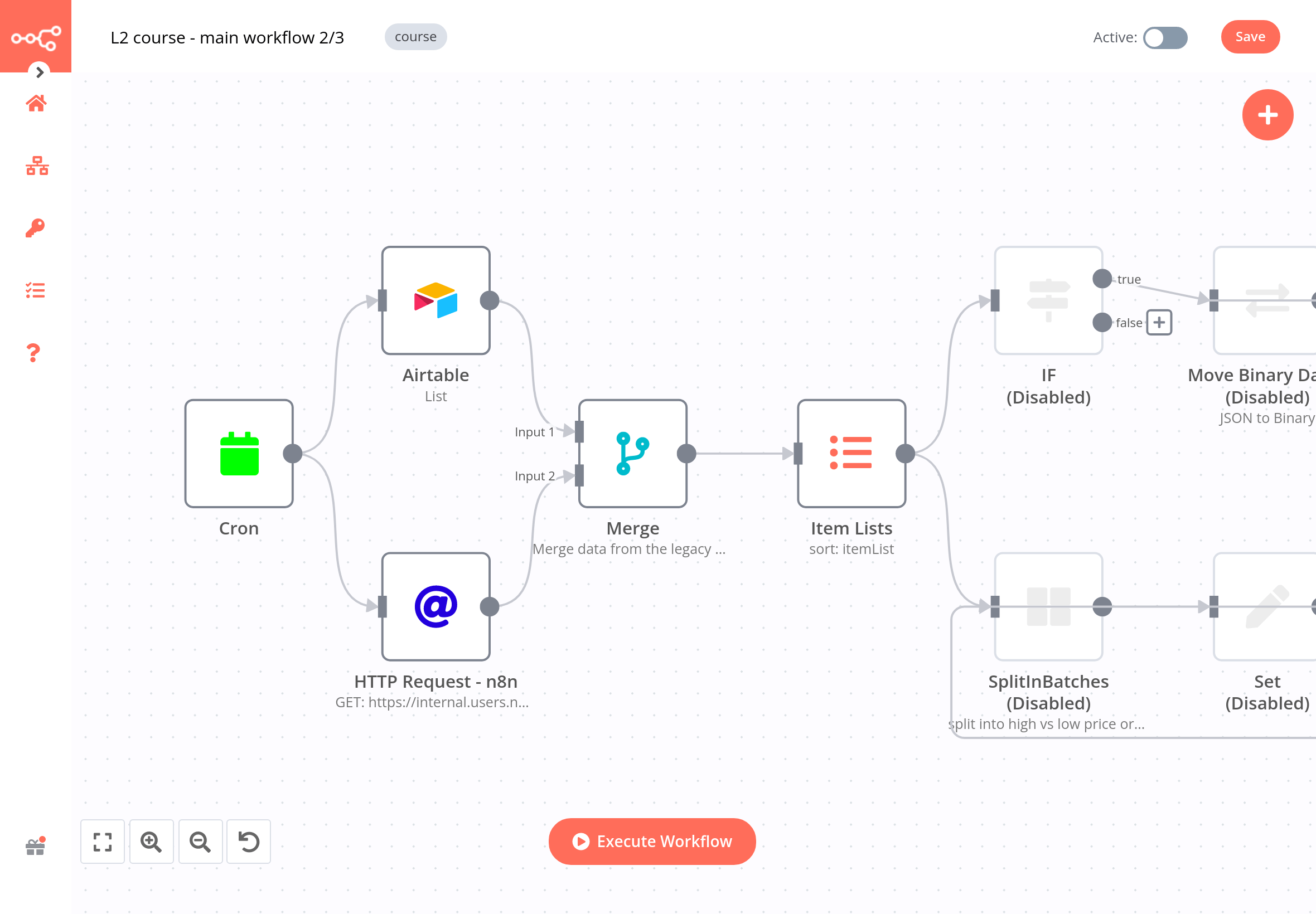 ). - Use the Merge node to merge data from the Airtable and HTTP Request node, based on the common key