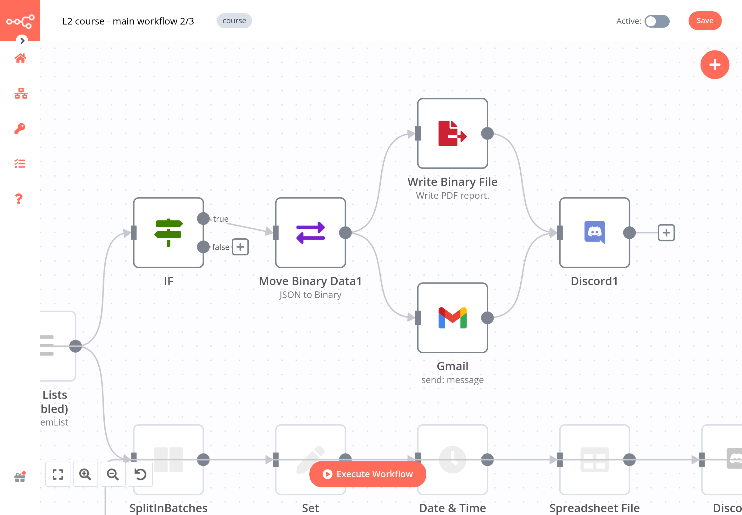 In this workflow, you will merge data from different sources, transform binary data, generate files, and send notifications about them. The final workflow should look like this: